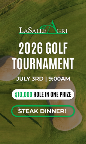 LaSalle Agri's annual golf tournament brings together farmers, municipal leaders, and industry professionals for a full day of golf, great food, and relationship building. Whether you are a seasoned golfer or just looking for a good time on the course, this event is about connecting with the people who matter most in the agricultural community. Join us for 18 holes, a steak dinner, prizes, and a chance at the $10,000 Hole in One contest.